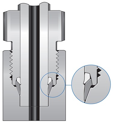 FIG. 5. While cone and thread fittings work well in traditional fossil fuel dispensing, they are prone to leak if used in H2 applications. Compression fittings (shown) are better suited to handle H2’s unique challenges.