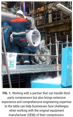 Over time, many businesses face challenges when working with the original equipment manufacturer (OEM) of their compressors. Whether due to poor service, the age of the equipment or a loss of connection with the OEM, companies often seek alternatives for repair and maintenance. However, this move can come with risks of its own, as there is no guarantee that a third party can offer the same level of performance (FIG. 1).