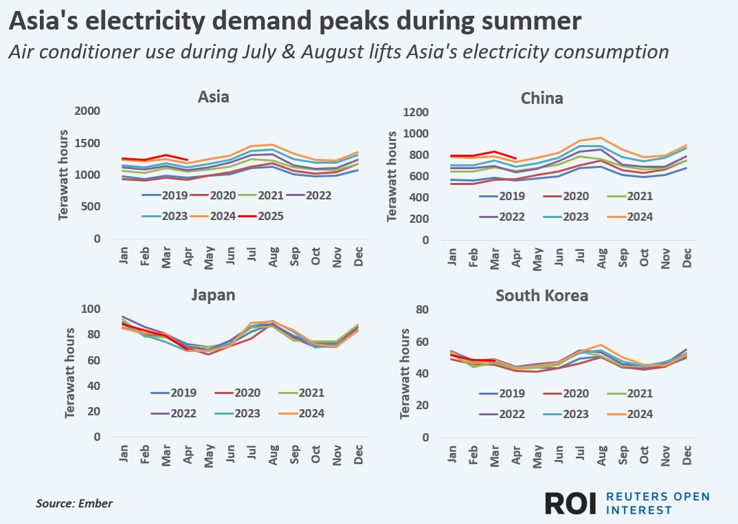 Gas heavy. Asia's electricity producers are used to the summer climb in electricity demand and adjust output levels accordingly.