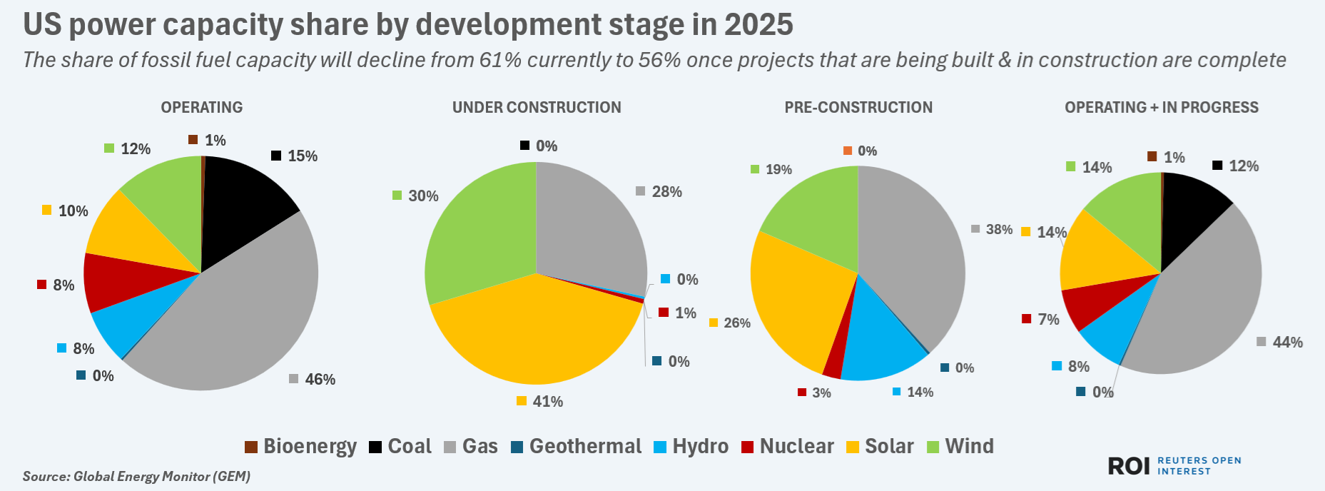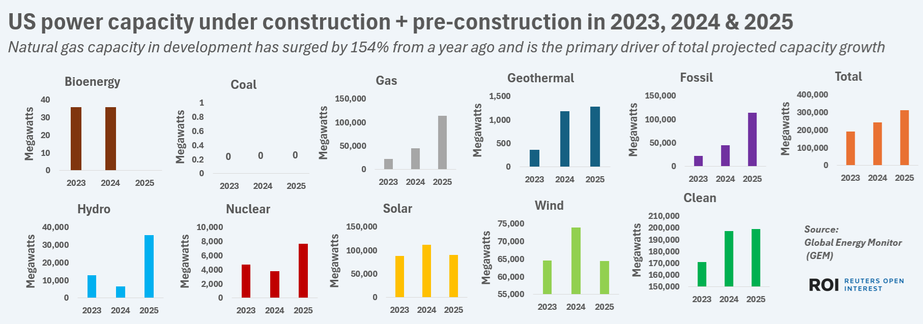 As of mid-2025, U.S. power developers had just over 114,000 megawatts (MW) of natural gas capacity under construction or in so-called pre-construction, according to data from Global Energy Monitor (GEM).