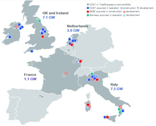 - United Kingdom and Ireland: 7.1 GW, including 5 GW from operating gas and biomass plants, 0.4 GW of batteries under construction and 1.7 GW under development.