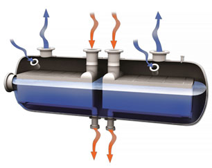 These reboilers are used to handle high process flowrates as the cold stream flows cross-currently through the exchanger, and are commonly used in ethylene applications. The reboiler enables approach temperatures as close as 1°C, and they are typically 20% of the size of a comparable shell-and-tube exchanger.