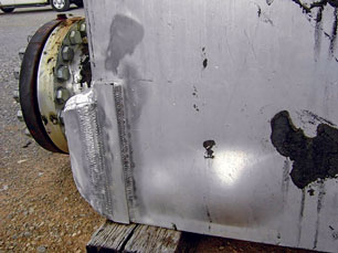 Incoming streams should be removed of water and CO2, which could freeze inside the exchanger at cryogenic temperatures, causing structural damage and leaks. The process piping should be adequately derimed before startup. Fig. 12 shows a BAHX that has been damaged by water freezing internally and expanding, causing a bulge in the cap sheet. The pressure drop of streams through the exchanger should be monitored; a continually rising pressure drop is an indicator of possible ice formation. Actions to consider include warming the exchanger and deriming the system.