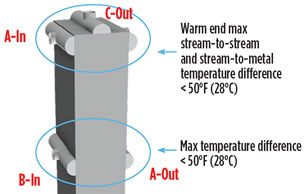 The most common cause for leaks in BAHXs is cracks from thermal stress. A summary of operating guidelines1 for managing thermal stress are: