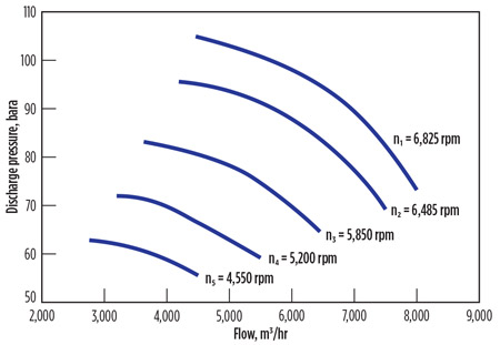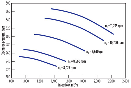 Analyzing the operating performance of centrifugal compressors requires the ability to adjust the compressor performance map to actual inlet conditions. Expected performance is described in graphs of discharge pressure, discharge temperature, polytropic head, efficiency and absorbed power. However, inlet conditions in the field may be different from the specifications defined on machine data sheets.