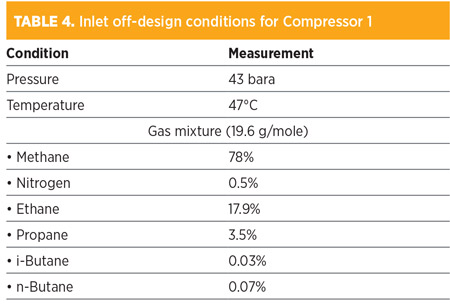 Case studies: Performance in off-design condition. The compressors under study were running in off-design inlet conditions. The analysis developed with Cmap allowed the machine operators to obtain compressor performance parameters in off-design conditions, and to compare these performance parameters to measured field values. Compressor performance maps for the design condition were available for both machines.