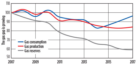 Fig. 6. The gap between gas production and consumption is growing. |