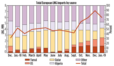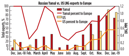 Fig. 9. LNG exports to Europe from Novatek’s Yamal LNG vs. from US LNG terminals. |