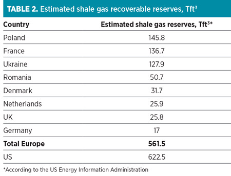 The shale question. A shale revolution of the type seen in the US will not happen in Europe, but a much quieter and smaller-scale adaptation could fit the bill if drilling restrictions are relaxed. The US Department of Energy11 estimates that Poland, France, Ukraine and others have large recoverable reserves, while the UK, Netherlands and Germany have smaller reserves. To put the figures in Table 2 into perspective, they equate to five times Europe’s current proven gas reserves and are not far from the estimated reserves volume of major shale producer the US.