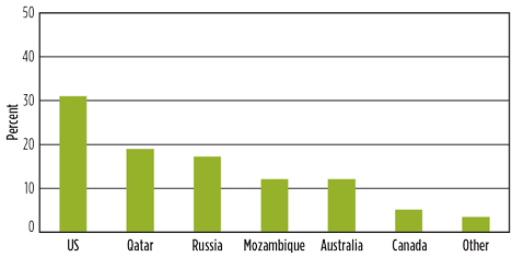 FIG. 1. Where will the majority of global liquefaction capacity be built in the next 5 yr? Source: Deloitte. |