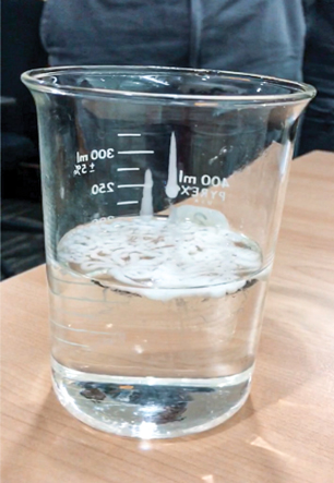 A review of the silicone vendor’s technical bulletin stated the recommended maximum dilution as three parts antifoam and one part water, so the antifoam had been diluted 30 times the recommended rate. This is not good practice with silicone emulsions because the emulsified oil used to hold the silicone solids in suspension cannot maintain its properties with an excess of water in the blend. More problematic, the antifoam will not “blend” with the water but will rather float to the top of the shot pot tank (Fig. 1). Operations staff were completely unaware that the antifoam would not blend with the amine in the shot pot tank. They assumed that they were adding a homogeneous solution of water and antifoam.