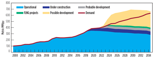 FIG. 6. A large number of onshore projects could help meet a forecast supply gap in the 2020s. FLNG will make up less than 4% of LNG supply. |