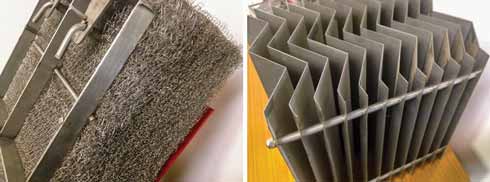 FIG. 1. Demisting devices: mesh pad (left); vane pack (right). |