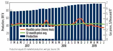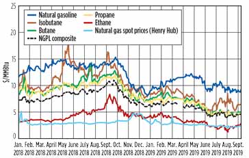 US natural gas spot prices at Henry Hub and NGL spot prices at Mont Belvieu |