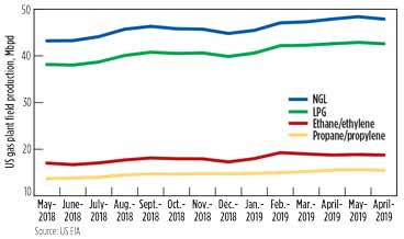 US natural gas plant field production of NGL, LPG, ethane and propane |