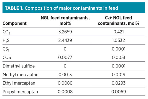 The composition of contaminants, particularly sulfur species for both feed streams, is summarized in Table 1. The simplified flow diagram for the NGL fractionation trains is shown in Fig. 1. The fractionated products will be stored onsite for domestic use or for export.