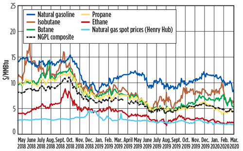 | U.S. natural gas spot prices at Henry Hub and NGL spot prices at Mont Belvieu, $/MMBtu |