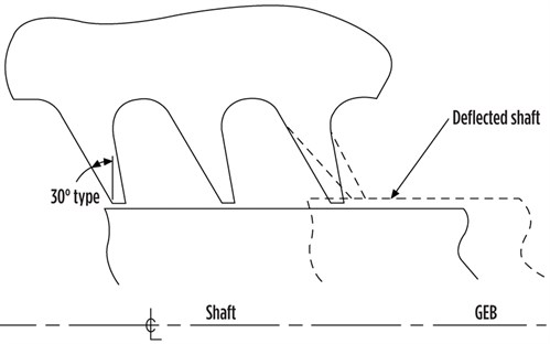 Rub-tolerant seals (Fig. 4) are thermoplastic seals designed to flex when touched by the rotor; therefore, reduced clearances are possible. Polyether ether ketone (PEEK) and Torlon are the most common rub-tolerant seals and have been used for more than 30 yr, but they are less common in new machinery due to their expense and difficulty of machining. However, these seals are excellent for replacement parts, as they can be designed to fit the existing cavity with no other changes required.