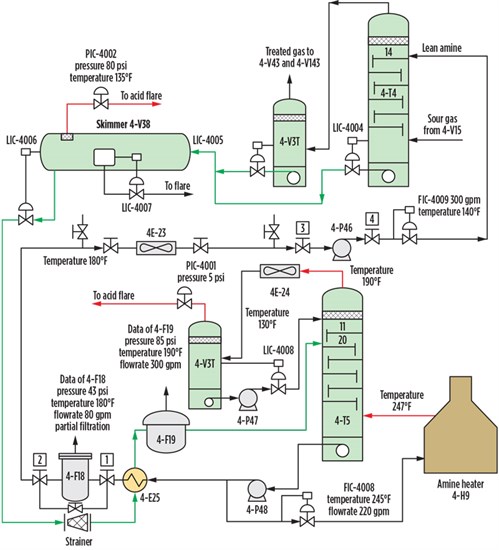 FIG. 2. Process flow diagram of amine unit at GUPCO plant.