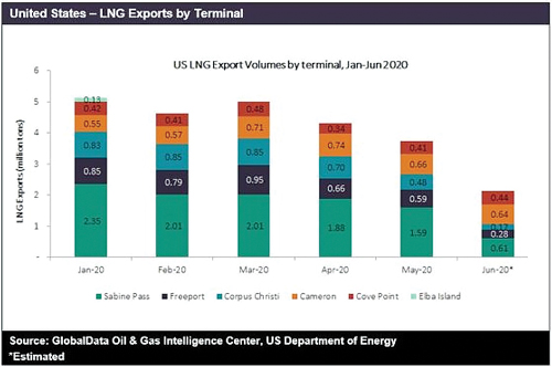 LNG exports from the U.S. witnessed an overall declining trend in the first six months of 2020 in the wake of the COVID-19 pandemic. The U.S. Energy Information Administration (EIA) estimated that about 46 cargoes were cancelled in June 2020, and about 50 cargoes were canceled the following month, hitting liquefaction capacity utilization in the U.S.