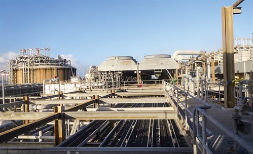 | FIG. 2. An LNG production facility. An LNG storage tank can be seen on the left. |