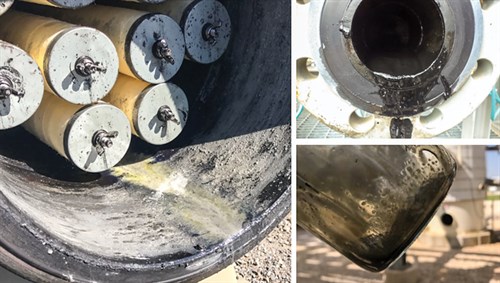 - Molecular sieve dust solids: Solids analysis showed that the molecular sieve dust filter was carrying over dust to the amine unit. This was caused by the recirculation of treated gas from the dehydration stage to the front end of the facility during startup mode. This also demonstrated the ineffectiveness of the dust filters downstream of the molecular sieve beds. Improved filtration and minimized recycling were necessary action items.