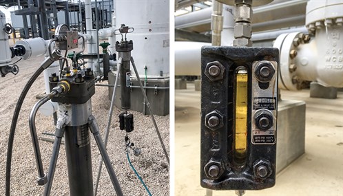 | FIG. 4. Example of a feed gas testing unit setup, showing liquids accumulation. |