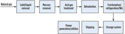 A number of mature LNG technologies are available on the market from leading companies. Although these technologies differ in their routes for producing LNG from natural gas, some of the common building blocks are feed conditioning (e.g., liquid/solid removal from incoming stream, mercury removal, acid gas removal), dehydration, liquefaction, refrigeration, fractionation, storage and utility infrastructure.