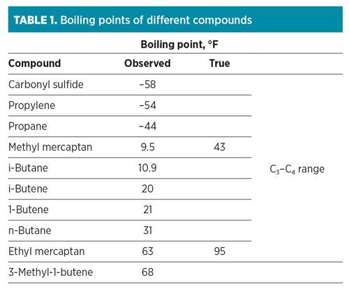 Depending on the hydrocarbon source, LPG streams will have a vastly different distribution and concentration of mercaptan molecules, which require more rigorous removal methods. Some contaminants, such as H2S, CO2, and mercaptan (RSH), can be removed from the LPG stream by caustic, referred to as extraction. Other contaminants, including COS, CS2 or dimethyl sulfide (DMS), cannot be extracted from the hydrocarbon with caustic alone.