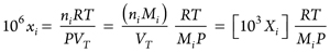Using Xi as the mass concentration of component i in mg/m3 and assuming the molar weight of component i is Mi (g/mole) gives Eq. 7: