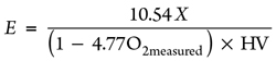 E = 1.25xq[1 + 4.77O2measured / (1 – 4.77O2measured)] (26)
