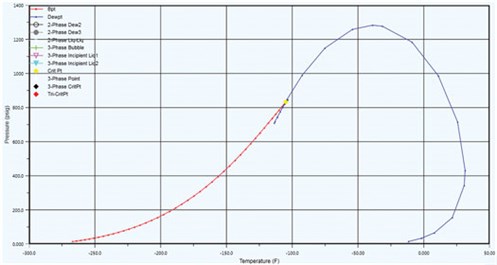 | FIG. 6. Phase envelope for lean sales gas after processing through a JT valve-based hydrocarbon dewpoint control unit |