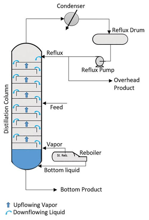 The depropanizer column is a distillation column used to recover the propane product from the natural gas liquid (NGL) feed stream to the column. FIG. 1 shows a typical layout of the column and associated equipment.