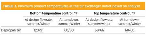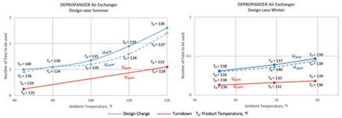 To reach this objective, it is essential to define the minimum acceptable temperature (MAT) with the available reboilers and air exchanger duties. These minimum temperatures can be used while varying the ambient weather temperature to define the number of required fans.