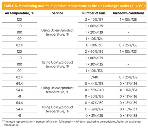 It has been proven that the maximum product temperature at the air exchanger outlet (= 140°F) can be maintained using a sequential control on-off in combination with one modulating fan, as summarized in TABLE 5.