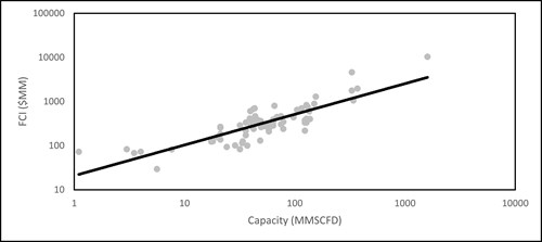 FCI ($MM) =15.697 × C0.7608 3 MMft3d < C < 1,400 MMft3d (14)