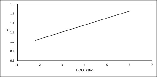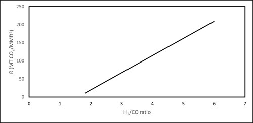 | FIG. 4. Estimated CO2 emissions intensity w.r.t syngas H2/CO ratio. |