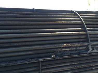 FIG. 3. Heat exchanger bundle after removal: Shell-side fouling (left) and tube-side fouling (right). |