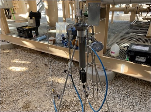 Based on the findings obtained from preliminary analysis, it was recommended to change the media material on the inlet coalescer elements, test a slipstream of feed gas and sample inlet contaminants, and determine the root cause of ammonium salts or ammonia entering the facility. To properly assess contamination levels and contamination breakthrough or carryover in a gas stream, effective removal and quantification of all liquids in the stream is necessary. This was accomplished by using the authors’ company’s GASCO small-scale testing unitsa (FIG. 2). The units use a high-pressure housing equipped with a proprietary coalescer media designed for the capture and separation of liquid contaminants and aerosols in the gas stream. The small-scale testing systema also has instrumentation to measure flow, pressure, differential pressure, liquid buildup levels and sampling ports.