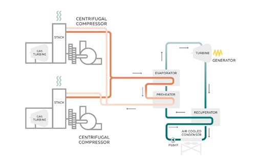 FIG. 2. ORC cycle scheme for waste heat recovery from a gas compressor station.
