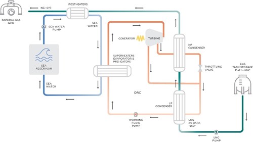 Cold energy recovery in a LNG regasification terminal. An interesting application of the ORC technology in the LNG sector is the potential recovery of cold energy available from the regasification processes.