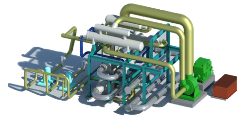 FIG. 5 provides a 3D model of the authors’ company’s multi-level condensation ORC CEP in a two-pressure level configuration.