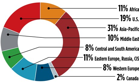 FIG. 1. Active gas processing/LNG projects by region.