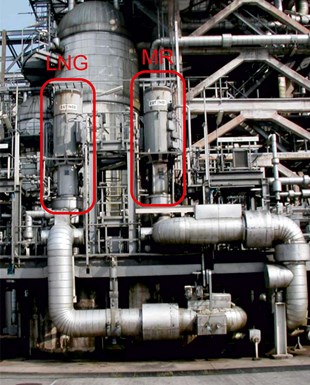 FIG. 3. Liquid expanders in the liquefaction process: the LNG expander (left), and mixed-refrigerant expander (right).