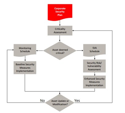 The criticality assessment should produce a ranking of assets by criticality score. A threshold value of an asset’s criticality should be determined beforehand. Any critical asset should be scheduled for an SVA, with priority given to assets designated critical by the regulators. Non-critical (lower priority) assets should be monitored to assess the necessity of baseline security measures, such as fencing and signage.