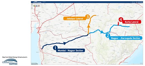 FIG. 8. View of the Mumbai-Nagpur-Jharsuguda pipeline system in India. Source: Global Energy Infrastructure.