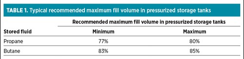 Maximum fill volume in propane, butane and LPG pressurized storage tanks