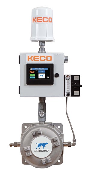 KECO has introduced the OxyHound, a highly-efficient process gas analyzer (FIG. 1) that conducts real-time and continuous oxygen analysis of natural gas, biogas and other gas streams. Utilizing optical quench luminescence technology for gaseous sampling, this cost-effective analyzer conducts precise oxygen measurements in a gaseous phase (ppmv and % on a molar basis) with no cross-sensitivity with CO2, hydrogen sulfide (H2S), ammonia (NH3), sulfur oxide (SO2), sulfate or other ionic species.