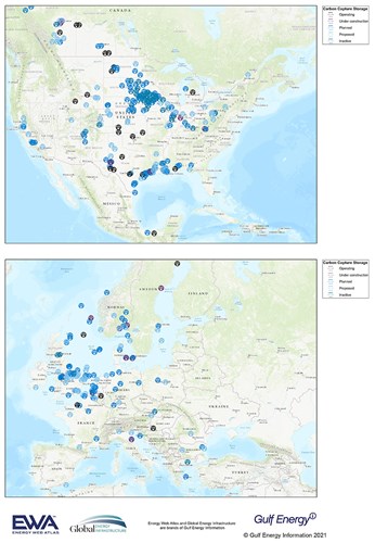 FIG. 2. CCS projects in the U.S. and Western Europe. Photos courtesy of Gulf Energy Infrastructure.