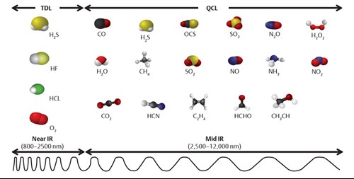 QCL lasers cover the mid-IR region, where high-sensitivity measurement of a broad range of gas components, including CO2, is now practical.